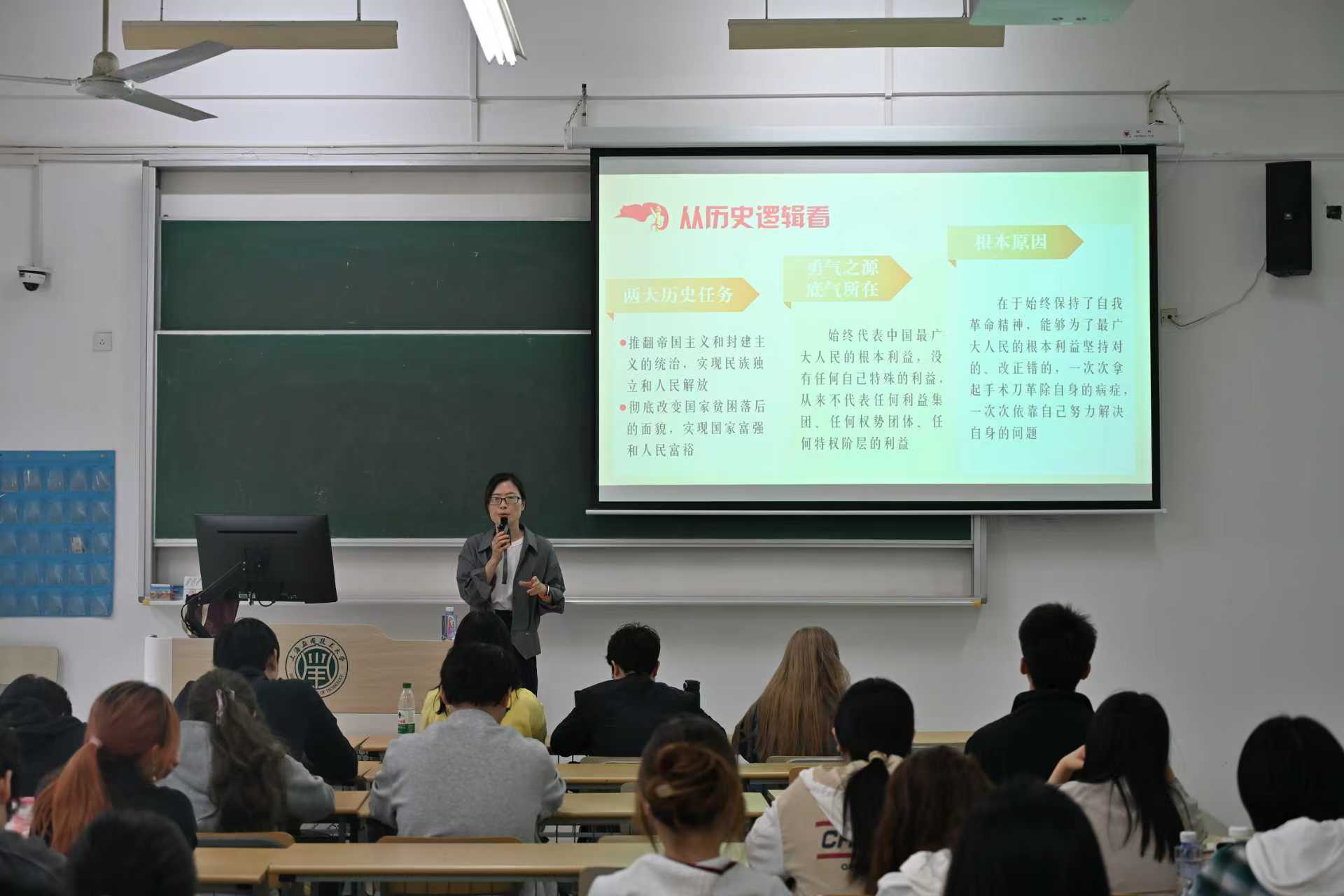 为帮助积极分子深化理解,李姿娟带领大家从理论、历史、现实三个逻辑层面进行系统剖析。针对入党积极分子的成长需求,她进一步分析指出,要从思想深处完成身份认知的转变,始终以党员标准严格自我要求,将自我净化、自我完善、自我革新、自我提高要求融入日常学习工作;要在专业钻研、志愿服务、作风建设等各方面发挥表率作用,以实际行动践行对党的忠诚。