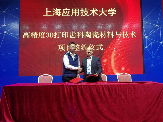 展会上,我校赵喆教授团队的“高精度3D打印齿科陶瓷材料与技术”项目与浙江盛泰防务科技有限公司签订了成交额约为1500万的合作协议,并荣获“高校展区一等奖”。我校也荣获 “优秀组织奖”和“先进个人”各一项。