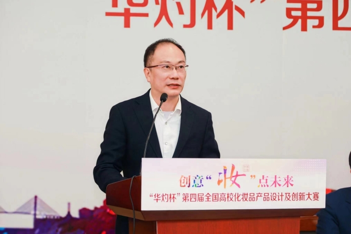 香料香精化妆品学部党委书记王化田在致辞中向支持大赛的企业和高校表示感谢,希望通过学生竞赛等方式进一步深化校企协作和校际合作,搭建综合型人才培养平台,提升化妆品人才培养质量。