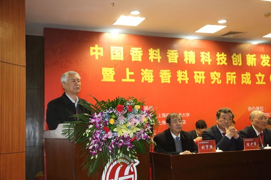 中国轻工联合会副会长、中国工程院院士、华南理工大学陈克复,中国工程院院士、北京工商大学校长孙宝国,中国科学院院士、四川大学石碧,中国科学院院士、上海交通大学颜德岳,中国工程院院士、东华大学俞建勇,中国生产力促进中心协会理事长刘玉兰,中国香料香精化妆品工业协会理事长陈少军,上海市科委副主任马兴发等专家和政府主管部门及行业协会组织领导出席庆典并分别致辞或做专题报告。