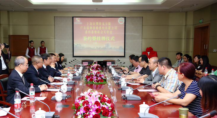 10月21日,我校与广东铭康香精香料有限公司香料香精联合实验室的签约暨挂牌仪式在图书馆B103举行。副校长陈东辉及中国香料香精化妆品工业协会理事长陈少军、广东铭康香精香料有限公司总经理吴焕清出席仪式并讲话。广东铭康香精香料有限公司战略顾问房东生、副总经理何洛强、总经理助理殷剑平、市场总监黄红艳(我校香料学院2002届毕业生)、高级调香师何巽祥,香料学院相关负责人以及师生代表参加了仪式。
