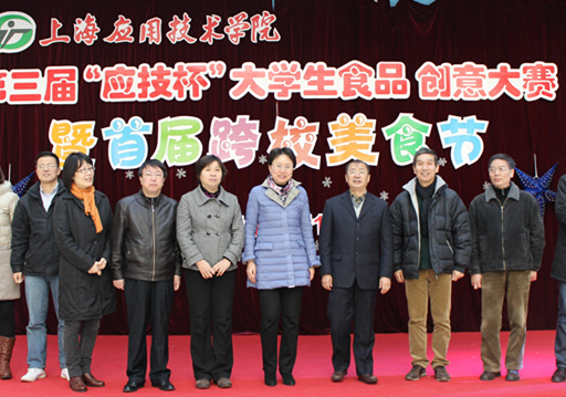 12月16日中午,正值师生午休时分,学生活动中心底楼大厅里人头攒动,四周布满了形形色色时尚、绿色食品创意作品的品鉴摊位。由上海市食品学会主办,上海越哲食品有限公司资助,我校香料学院科学商店和“食全食美”社团共同承办的“第三届‘应技杯’大学生食品创意大赛暨首届跨校美食节”在这里隆重举行。校党委书记刘宇陆,副书记、副校长张艳萍,上海越哲食品有限公司技术总监励振以及教务处、香料香精联合党委、学生处、后保处、校团委、工会等部门的负责人应邀出席了此次活动。